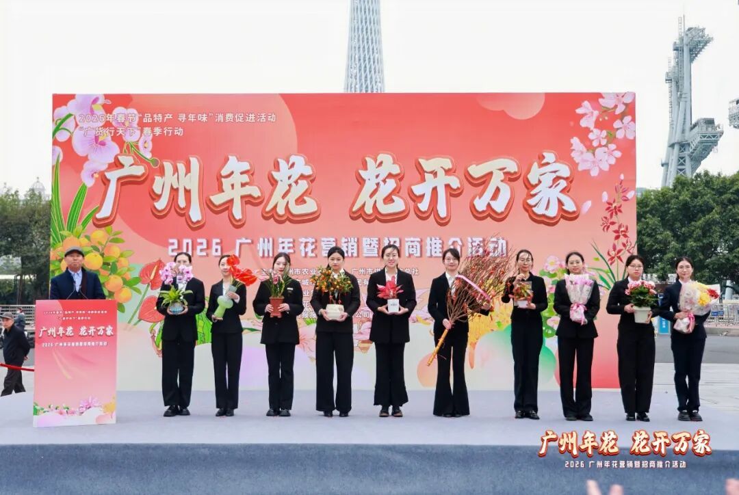 年花一开,年味自来,买年花是刻在老广骨子里的年俗。在前不久举行的2026广州年花营销暨招商推介活动上,最新款广州十大主产年花明星阵容新鲜出炉,蝴蝶兰、红掌、国兰、年桔、粗肋草、桃花、猪笼草、百合、玫瑰海棠、菊花齐齐上榜,不仅将老广跃马扬鞭迎新春的期盼拉满,更吸引了中央电视台财经频道(CCTV-2)、国际频道(CCTV-4)和新闻频道(CCTV-13)等多频道栏目的聚焦报道。这份承载千年广府民俗的清单,不仅是街坊新年的美好期许,更彰显“千年花城”向“世界花城”迈步的底气,朵朵芬芳,串起的正是广州的岁月与风华。