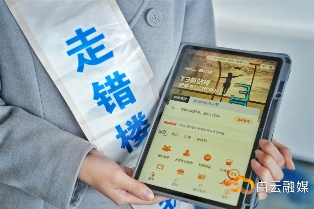 交通接驳方面,与T3航站楼衔接的白云机场东站城际车站已投入使用,旅客可快速换乘广州地铁多条线路。白云机场还开通了公交接驳专线,并安排24小时免费穿梭巴士,往返于各航站楼。为解决旅客走错航站楼问题,工作人员佩戴“走错楼找我”绶带,提供主动引导服务,助力旅客顺利中转。